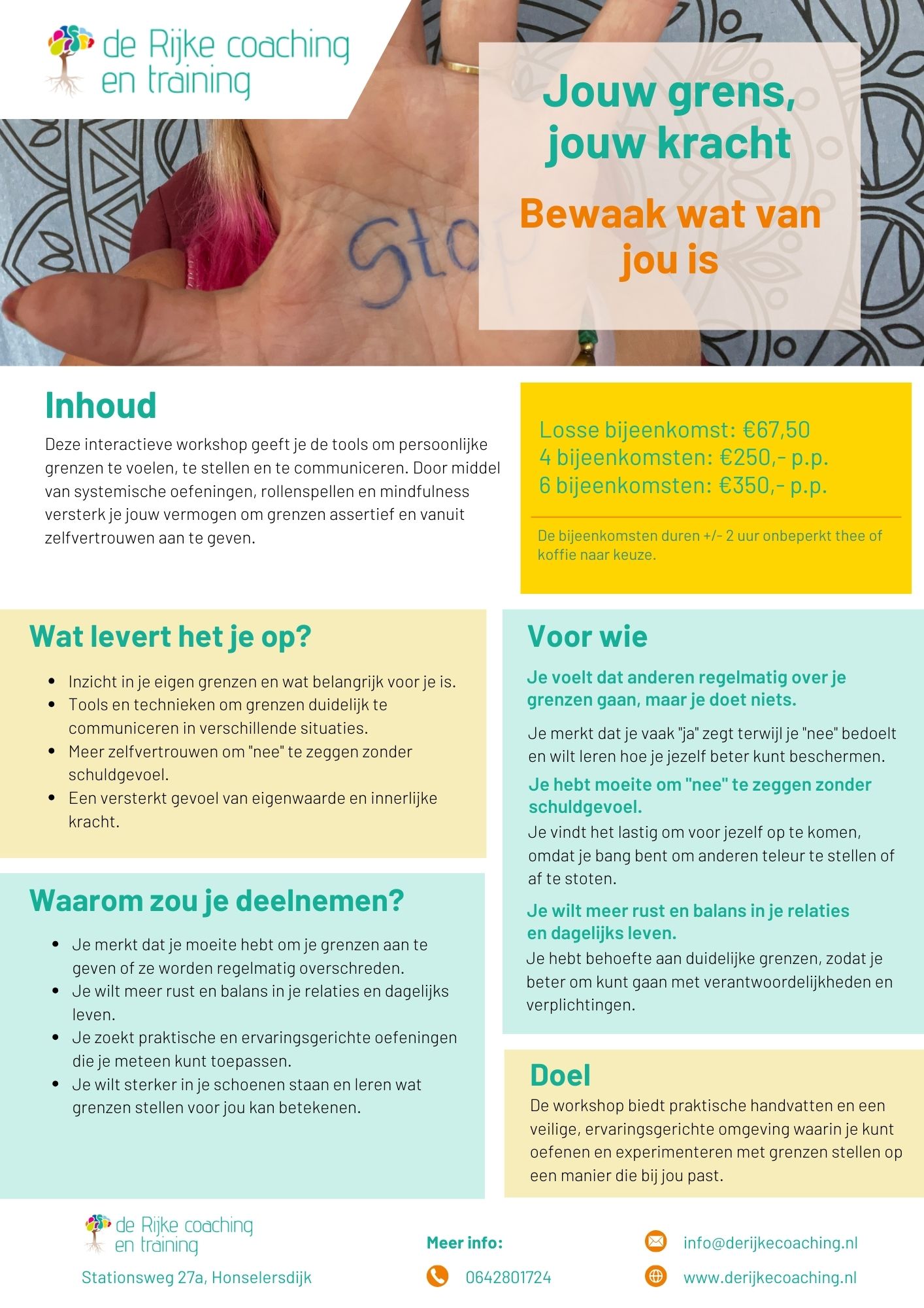 Individueel €85,- (1,5 uur i.p.v. 2 uur)